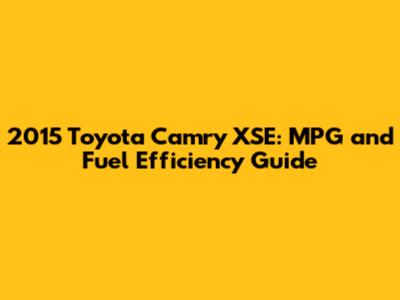 By following these tips, you can significantly improve your 2015 Toyota Camry XSE's fuel efficiency and save money on gas.