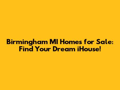 Are you dreaming of owning an ihouse in Birmingham, Michigan? You're in the right spot! This guide will walk you through everything you need to know to find the perfect ihouse for sale in this charming and highly desirable city. Whether you're a first-time homebuyer, looking to upgrade, or simply searching for a change of scenery, Birmingham offers a fantastic blend of community, convenience, and beautiful homes. Let’s dive in and explore what makes Birmingham, MI, such a great place to live and how you can snag your very own ihouse.