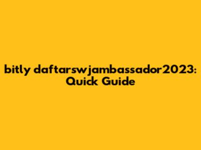 Bitly Daftarswjambassador2023: Quick Guide