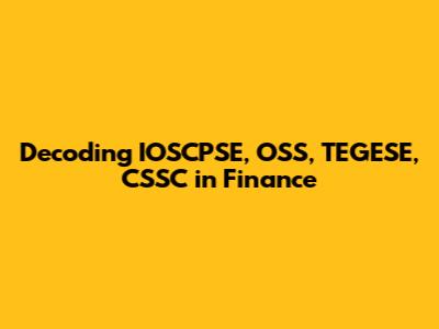 Decoding IOSCPSE, OSS, TEGESE, CSSC In Finance