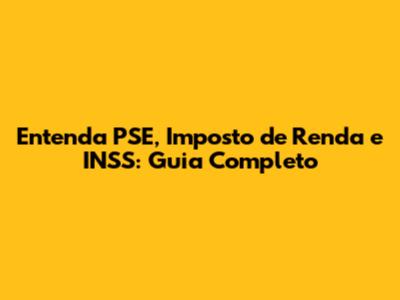 Entenda PSE, Imposto De Renda E INSS: Guia Completo