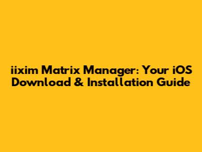 Iixim Matrix Manager: Download & Installation Guide For IOS