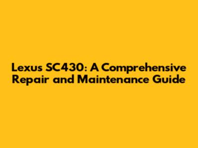 Lexus SC430: A Comprehensive Repair And Maintenance Guide