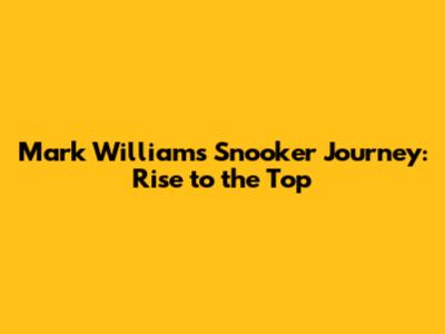Mark Williams' Snooker Journey: Rise To The Top