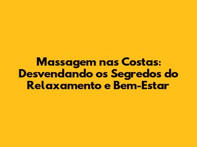 Massagem Nas Costas: Guia Completo Para Relaxamento E Alívio