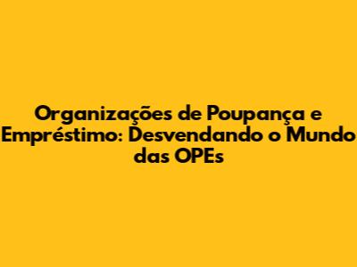 O Que São Organizações de Poupança e Empréstimo (OPEs)?