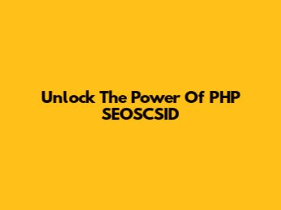Unlock The Power Of PHP SEOSCSID
