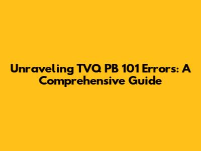 Unraveling TVQ PB 101 Errors: A Comprehensive Guide